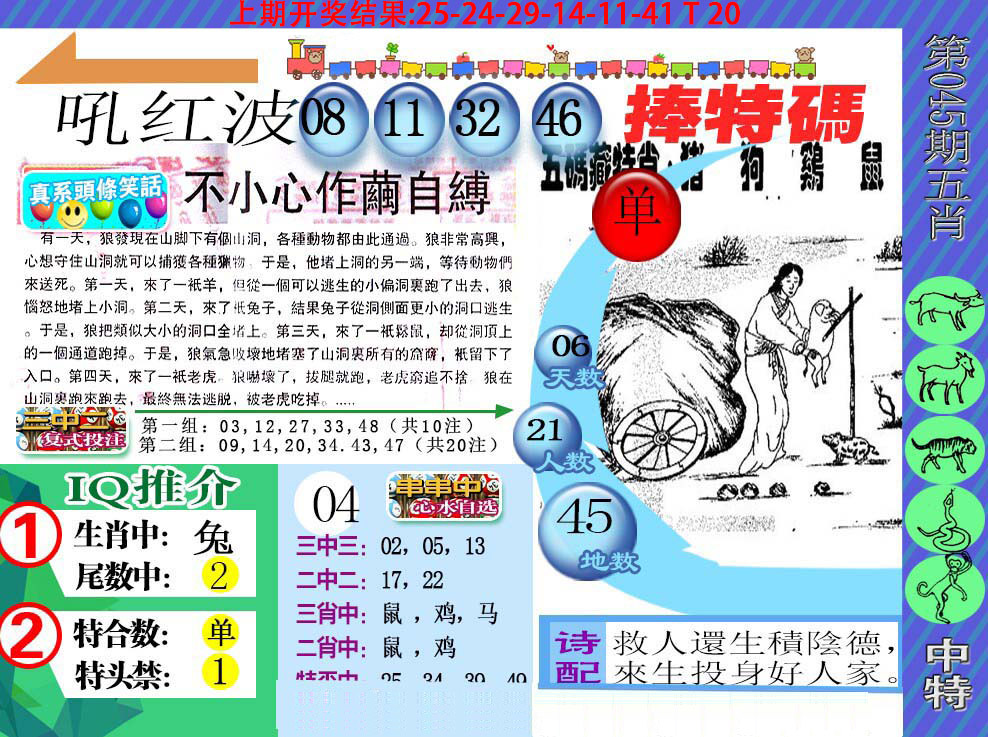 045期:必中⑥肖:虎猪猴兔鸡狗稳准狠